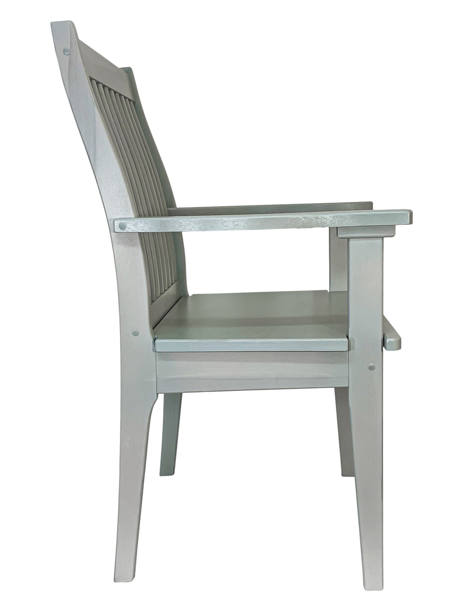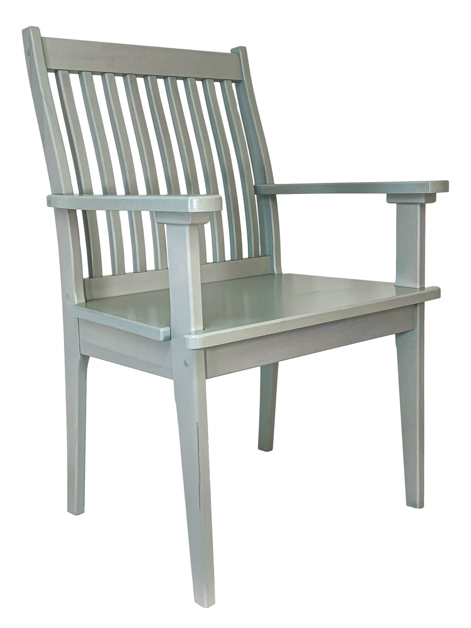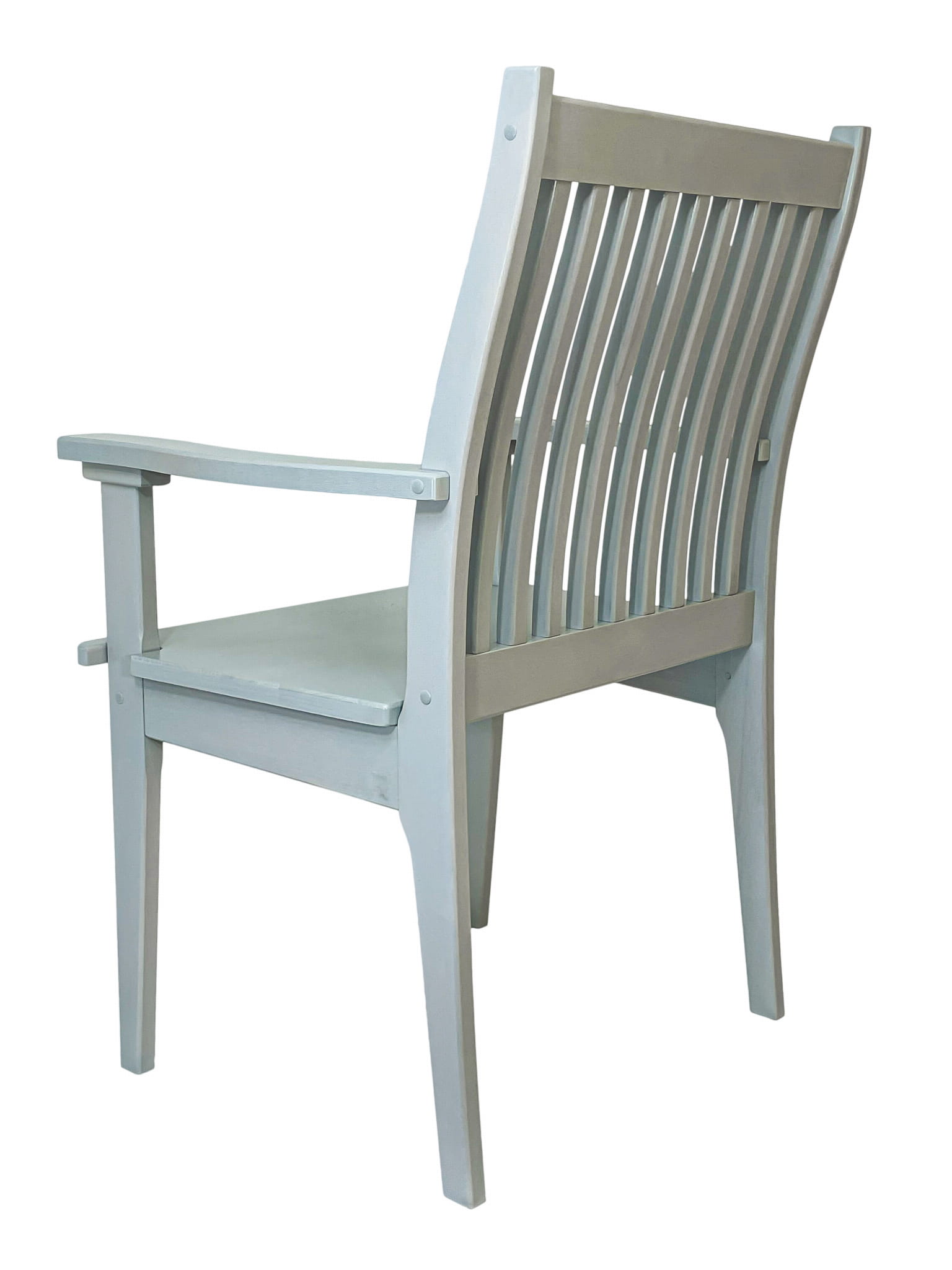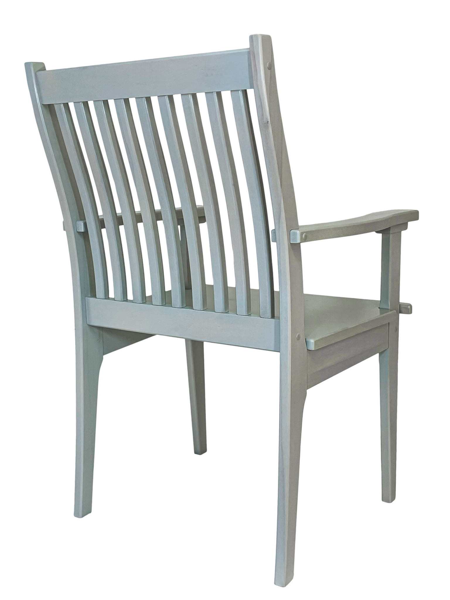 Krzesło posiada szerokie oparcie i siedzisko, które zapewniają komfortowe siedzenie nawet przez długi czas. Profilowane oparcie składające się z pionowych listew idealnie dopasowuje się do kształtu pleców, zapewniając prawidłowe podparcie. Wygodne podłokietniki pozwalają na relaks i odciążenie ramion.