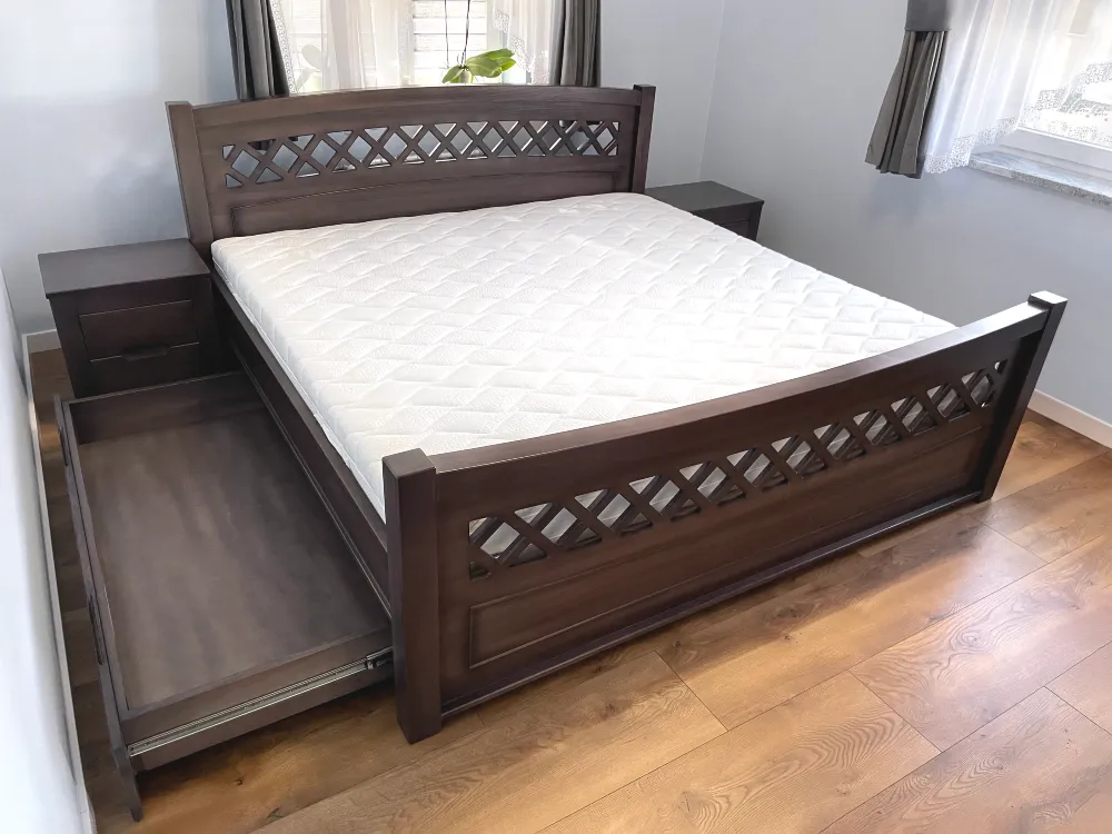 Łóżko ażurowe z szufladami bukowe szerokość od 140 do 200 cm