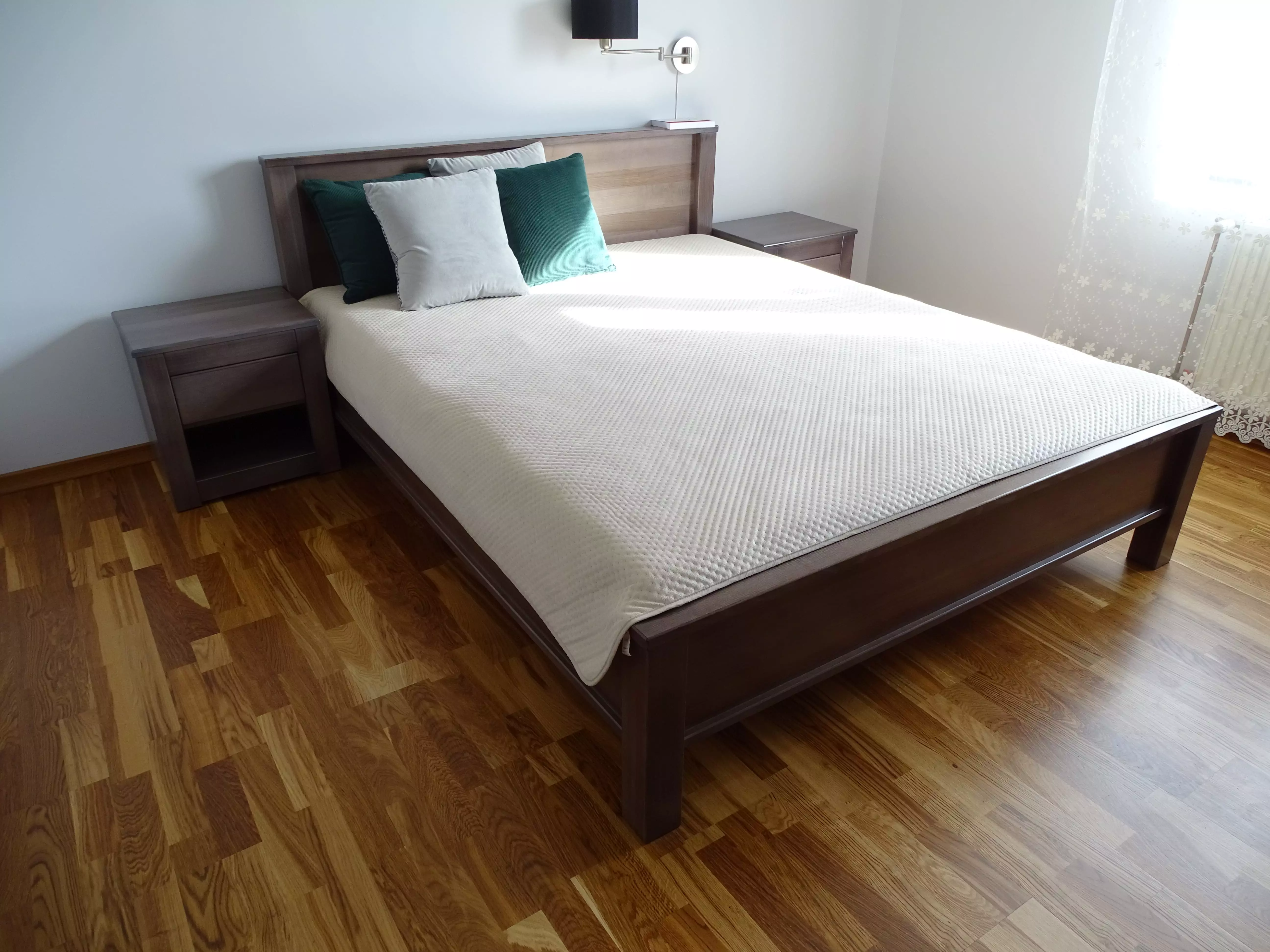 Mebel wykonywany jest w kolorze na życzenie. Łóżko pokrywane jest 2 warstwami lakieru Sayerlack podkładem oraz lakierem nawierzchniowym w wariancie półmat.