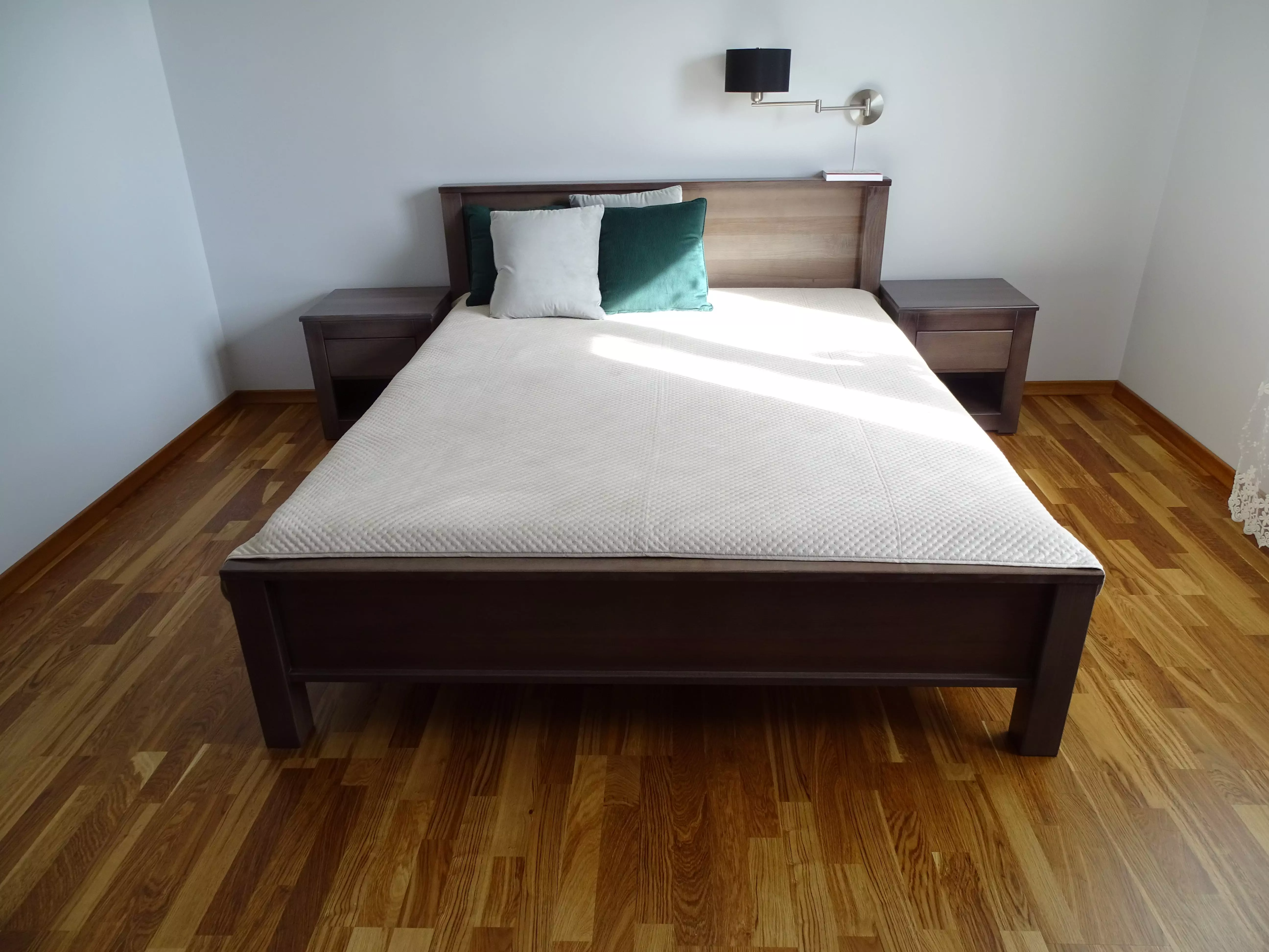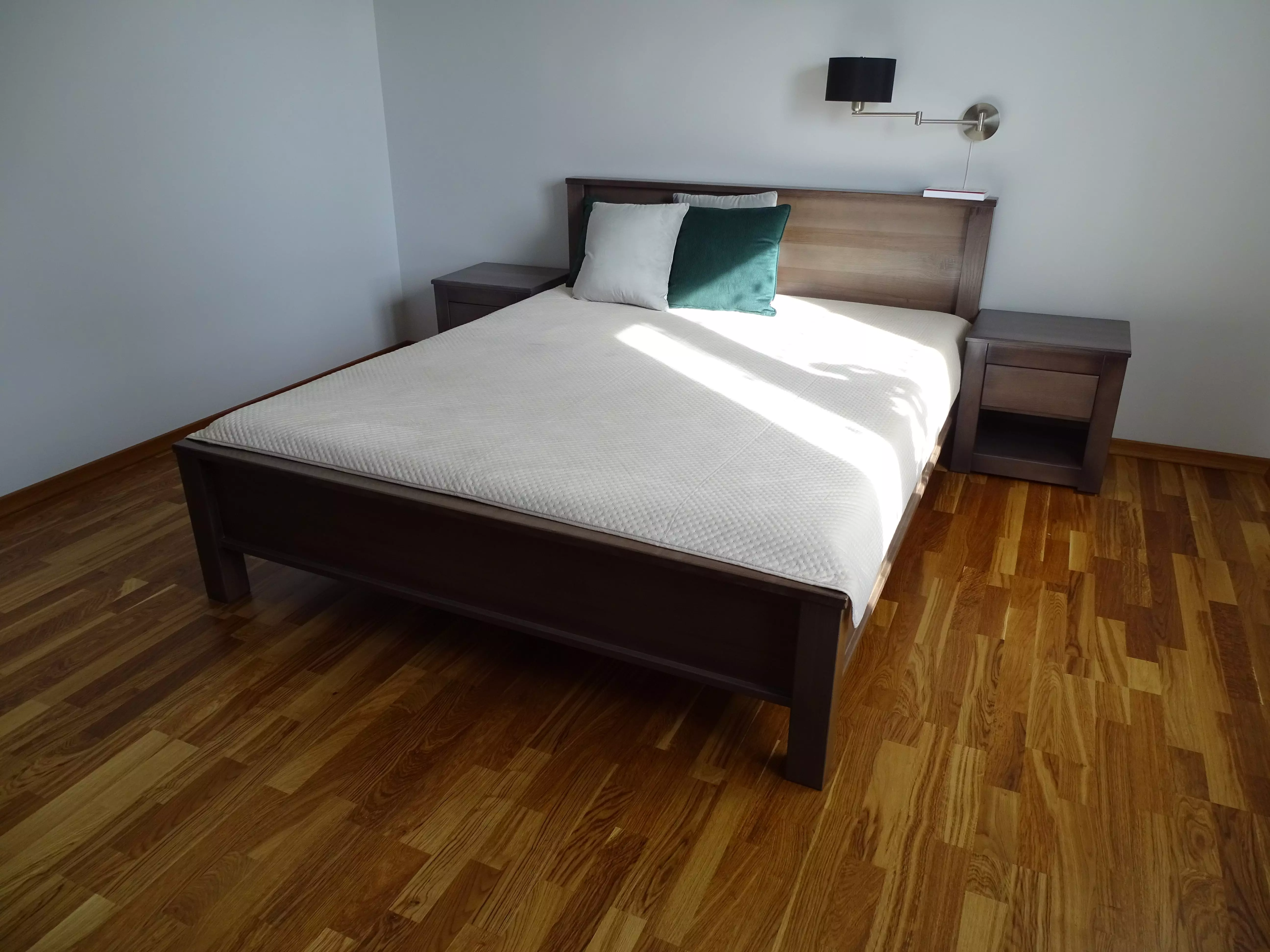 Łóżko wzór Mateusz cechuje prostota i solidne wykończenie. Mebel wykonany jest z litego drewna dębowego.